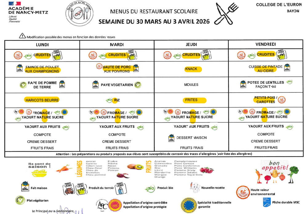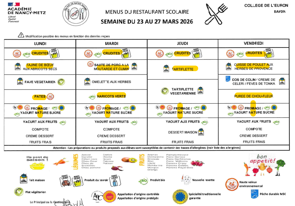 Les plats sont préparés par le collège de Bayon.