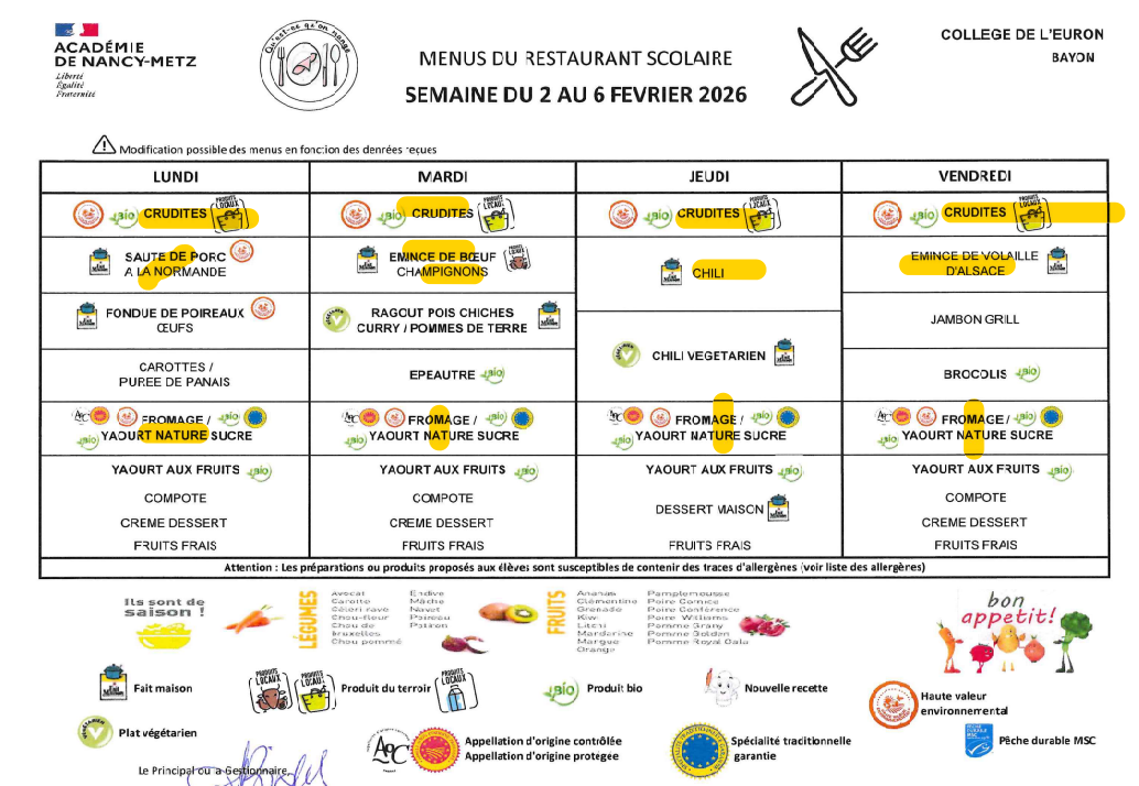 Les plats sont préparés par le collège de Bayon.